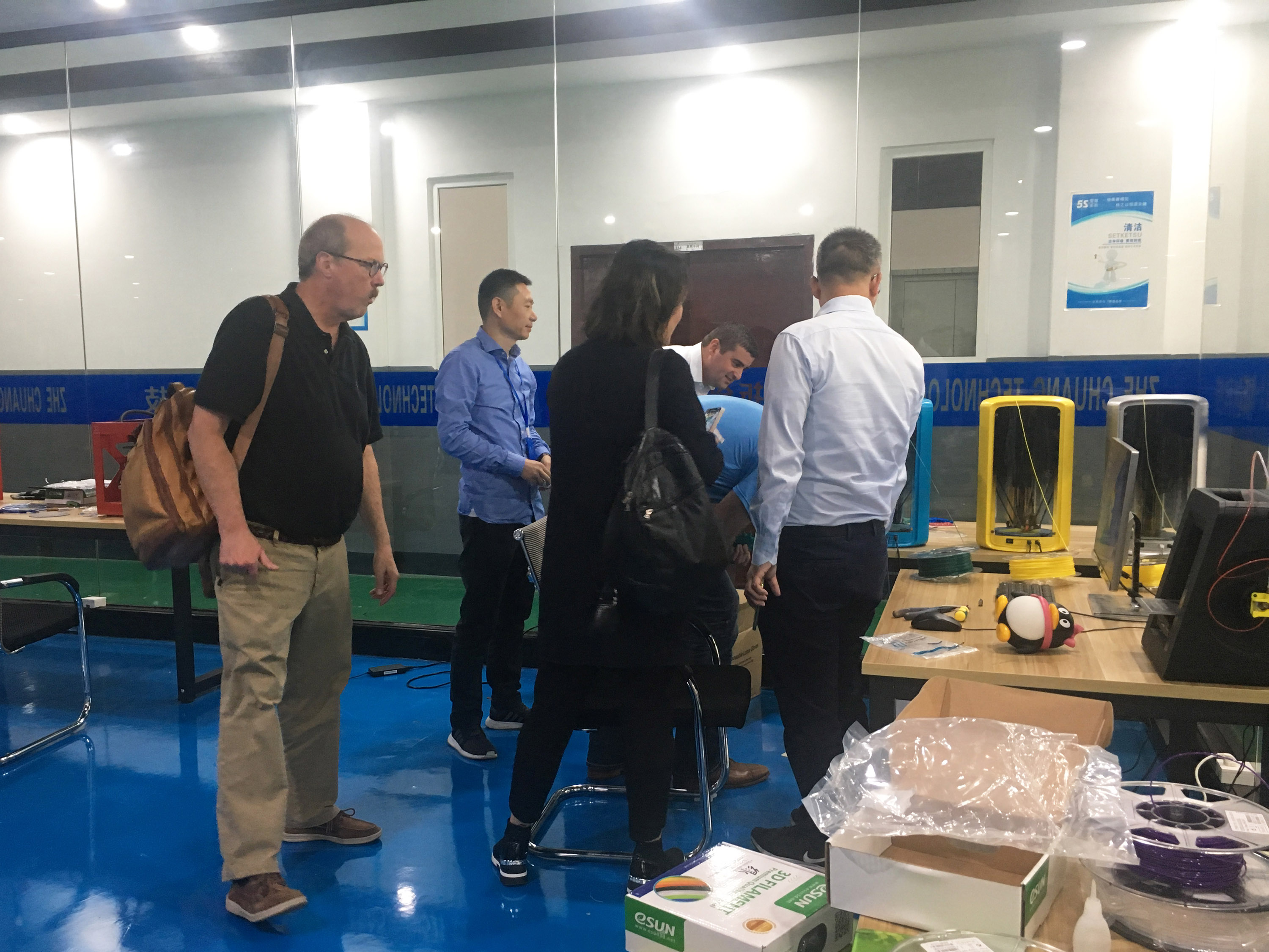 參觀3D打印車間和樣品間后,陶董事長向美國客戶介紹了浙創科技的研發成果、合作伙伴、業務發展等等。最后,陶董事長帶領美國客戶參觀研發樓,為他們介紹了各種研發設備。希望通過此次參觀研發樓,能讓美國客戶更深入的了解3D打印耗材的研發過程。在參觀過程中,陶董事長就美國客戶提出的相關問題進行了詳細的解答。